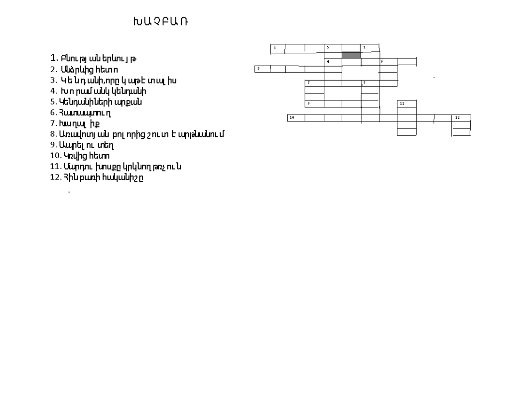 ԽԱՉԲԱՌ On May 9, 2020 By Նարե ՄելքոնյանIn Հեռավար առցանց ուսուցում, Հորինուկներ, Մայրենի, ՊատումներLeave a comment Խաչբառը կազմել եմ ես,այսինքն Նարեն։Մի փոքր օգնել է մայրիկս։