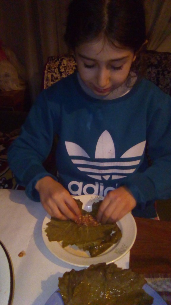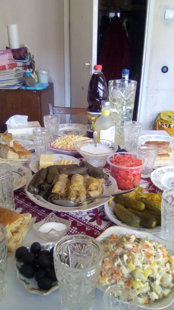 Հետո սկսում եմ մայրիկիս հետ պատրաստել տոնական ուտեստներ և քաղցրավենիքներ։Այս տարի օգնել եմ փաթաթել թփով տոլման,որը առաջին անգամ էի փորձում փաթաթել և ստացվեց։Հետո թխեցինք թխվածքաբլիթներ տոնածառի, մարդուկի, աստղիկների կերպարներով։Մեզ միացավ փոքր եղբայրս։Մինչ կզարդարեինք տոնական սեղանը, այդ ընթացքում Ձմեռ պապը բերեց նվերները։Ես և եղբայրս շատ ուրախացանք, երբ ստացանք նվերները։Նվերներ ստացան նաև տան մեծերը։