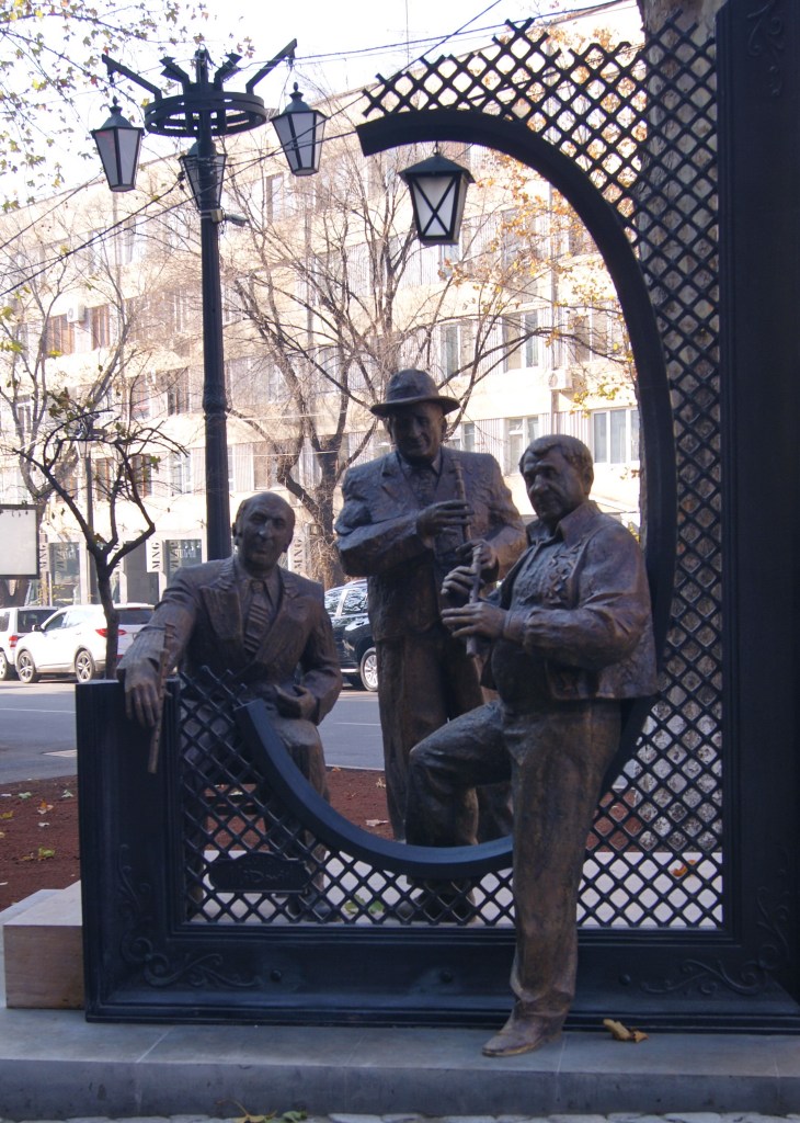 «Ուշացած լուսանկար», Արձանախումբը գտնվում է Երևանի Աբովյան փողոցում, տեղադրվել է 2015 թվականի դեկտեմբերի 8-ին, երևանի պատվավոր քաղաքացի, դուդուկահար Ջիվան Գասպարյանը, հուշարձանն ստեղծվել է Երևանի քաղաքապետարանի մասնակցությամբ և «Տաշիր գրուպ» ընկերության հովանավորությամբ, ճարտարապետ՝ Լևոն Իգիթյան, քանդակագործ՝ Դավիթ Մինասյան։