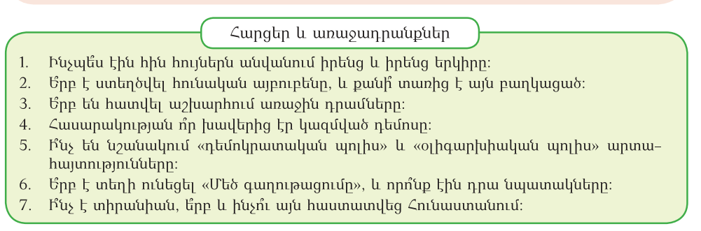 պատմությունՀարգելի՛ սովորողներ, այս շաբաթվա անելիքներին են․