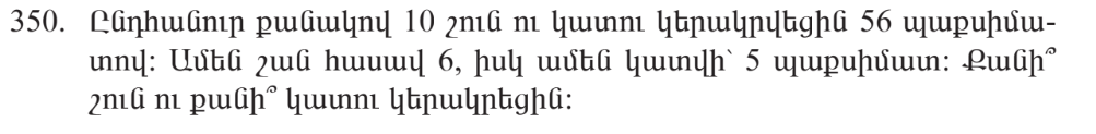 Տնային առաջադրանք․ Հանրահաշիվ 7 On February 3, 2024February 26, 2024 By Նարե ՄելքոնյանIn Հանրահաշիվ 7Leave a comment 6 (10 – x) + 5 x = 56 60 – 6x + 5 x = 56 x = 4 10 – x = 6 Պատ․՝ 4, 6